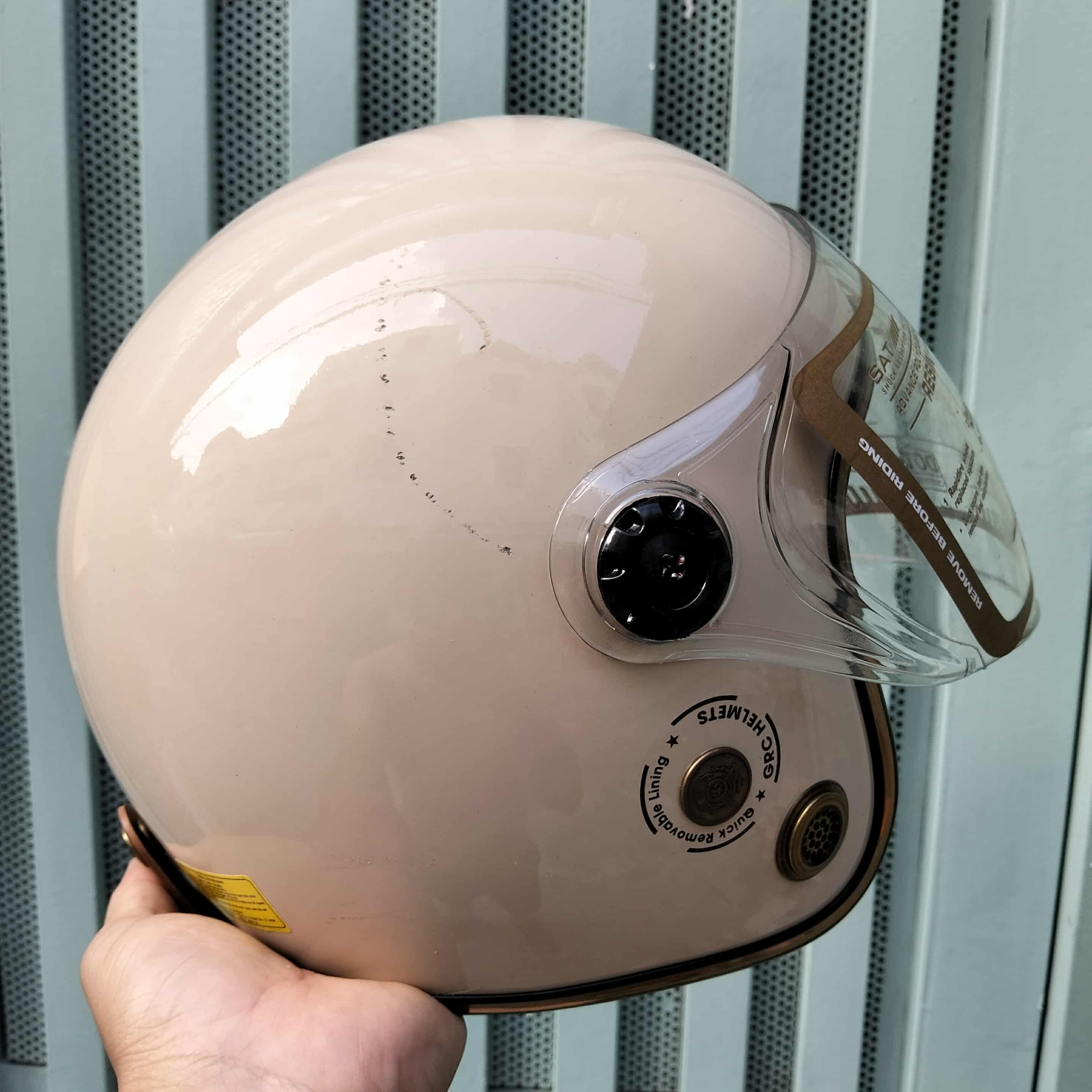 Nón bảo hiểm 3/4 kính dài thông gió Kem